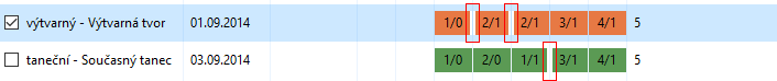V seznamu se přidá řádek se studiem, který je barevně rozlišený podle oboru.